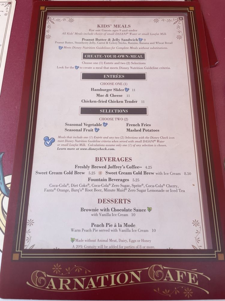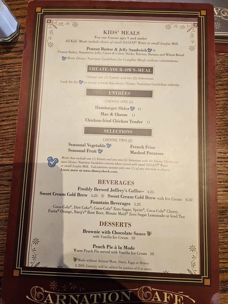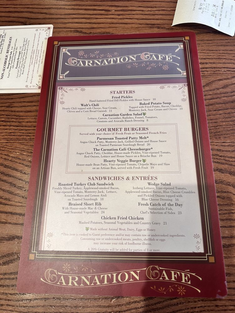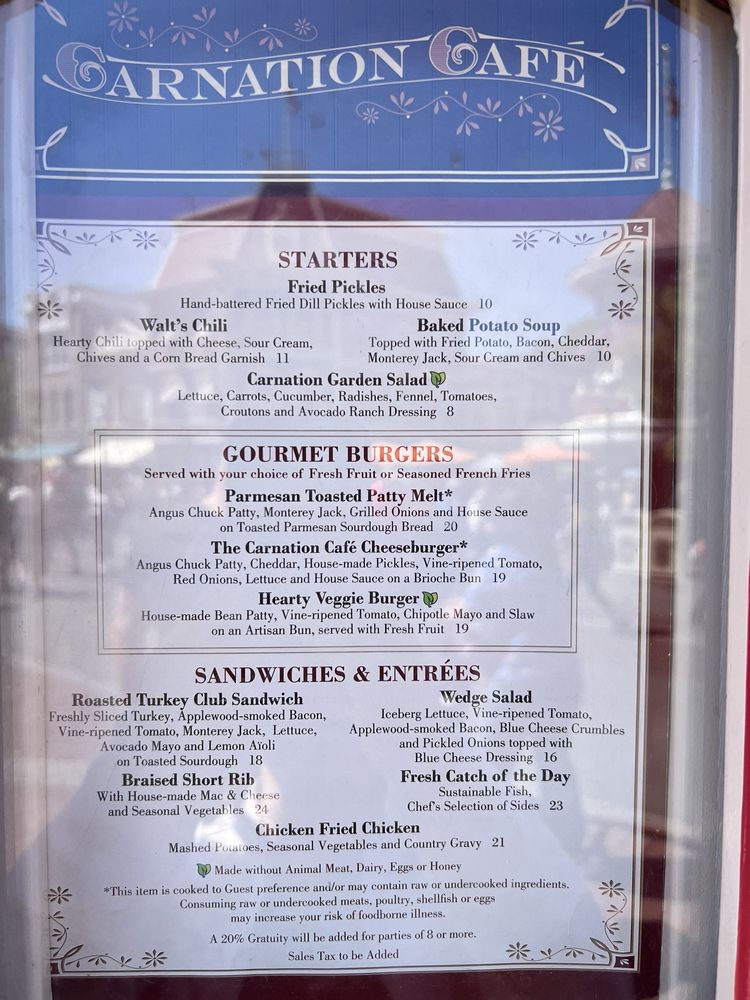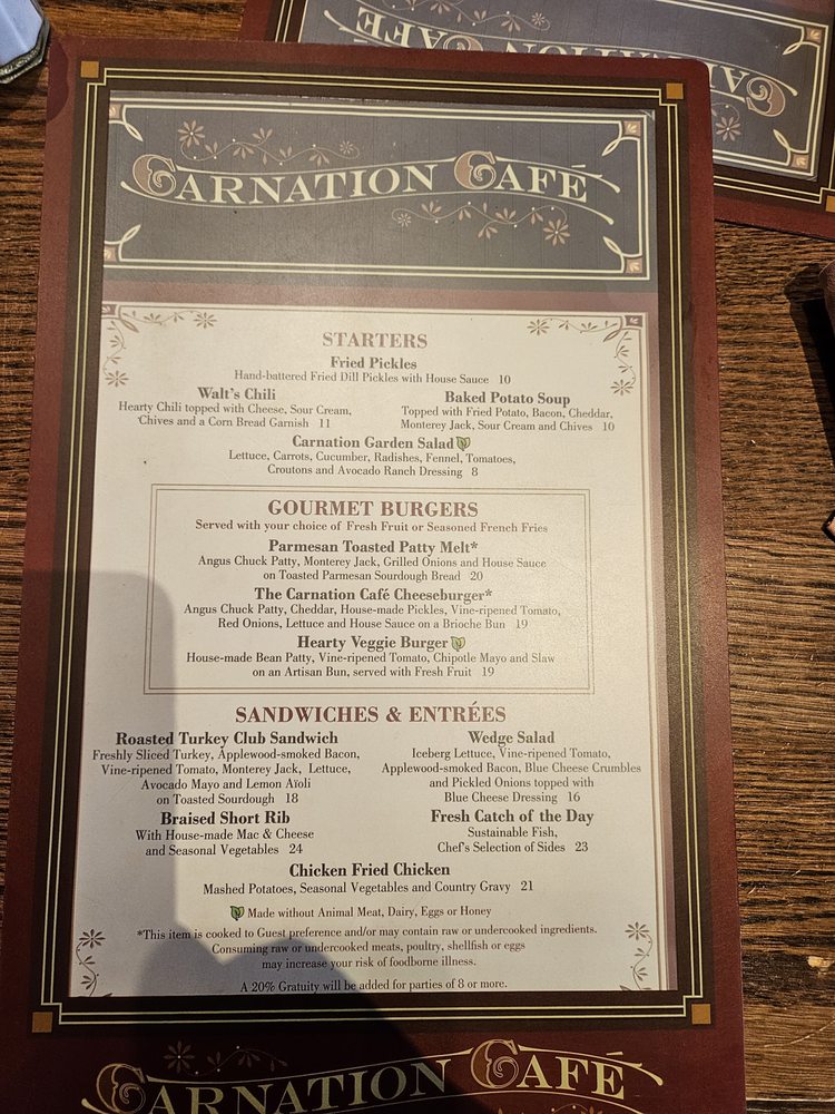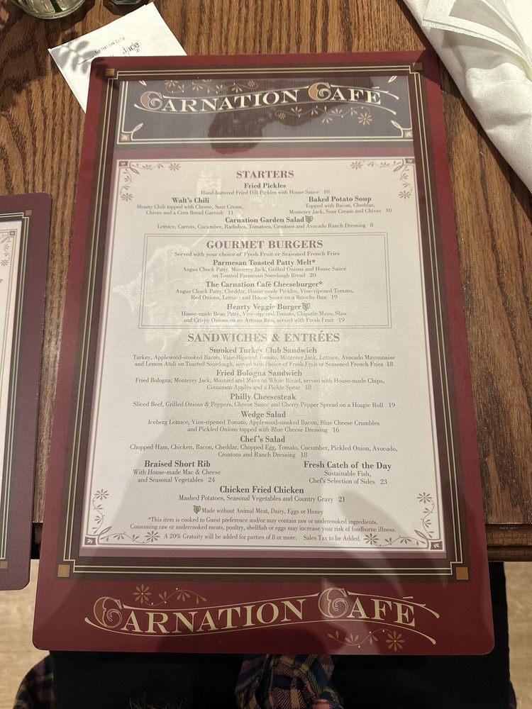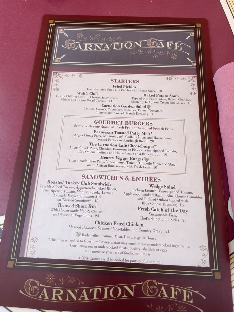 Carnation Cafe at Disneyland Park in Anaheim, CA is a standout among the dining options. With a variety of American breakfast and brunch dishes, including vegan and vegetarian options, Carnation Cafe caters to all tastes. Customers rave about the high-quality food, attentive service, and charming ambiance. Standout dishes like the fried pickles with aioli, unique burgers with sweet and sour pickles, and hearty chili are fan favorites. The macaroni and cheese may be forgettable, but the broccoli dipped in cheese is a surprising delight. The outdoor seating area offers a great view for enjoying a meal while watching the parade. Overall, Carnation Cafe stands out for its delicious food, friendly service, and cozy atmosphere, making it a must-visit spot in the hustle and bustle of Disneyland.
